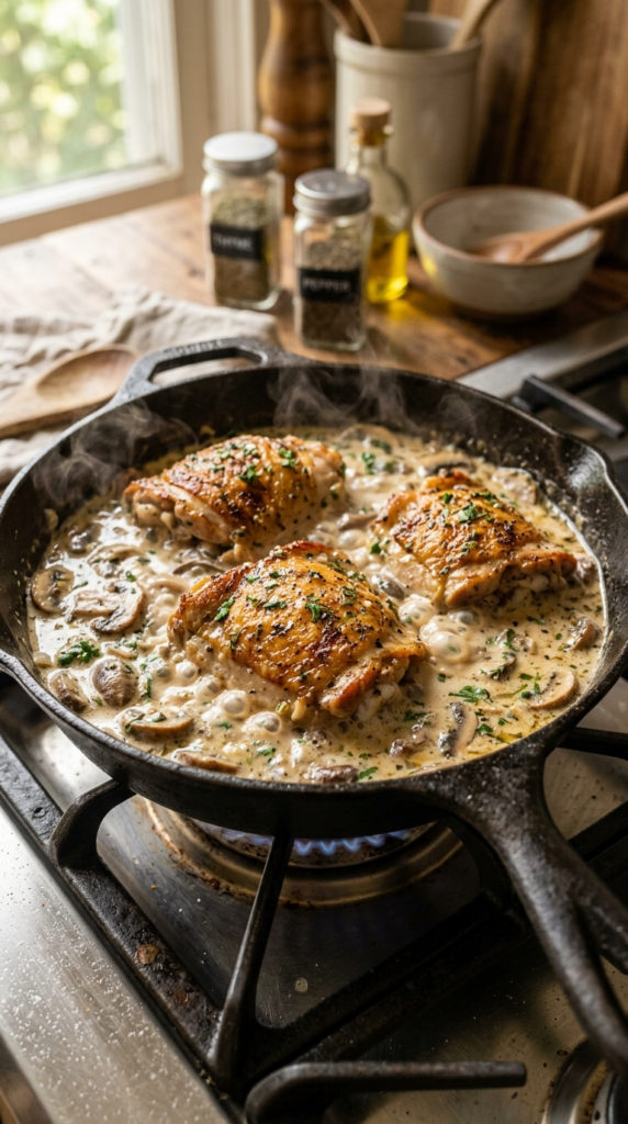 Life moves fast, especially for us Indian home cooks balancing everything from family responsibilities to busy workdays. Finding a meal that’s both comforting and quick to prepare can feel like a golden ticket. That’s where a dish like creamy chicken thighs with a rich mushroom and garlic sauce truly shines. It’s the kind of meal that promises deliciousness without demanding hours in the kitchen, making it a perfect contender for your regular dinner rotation.