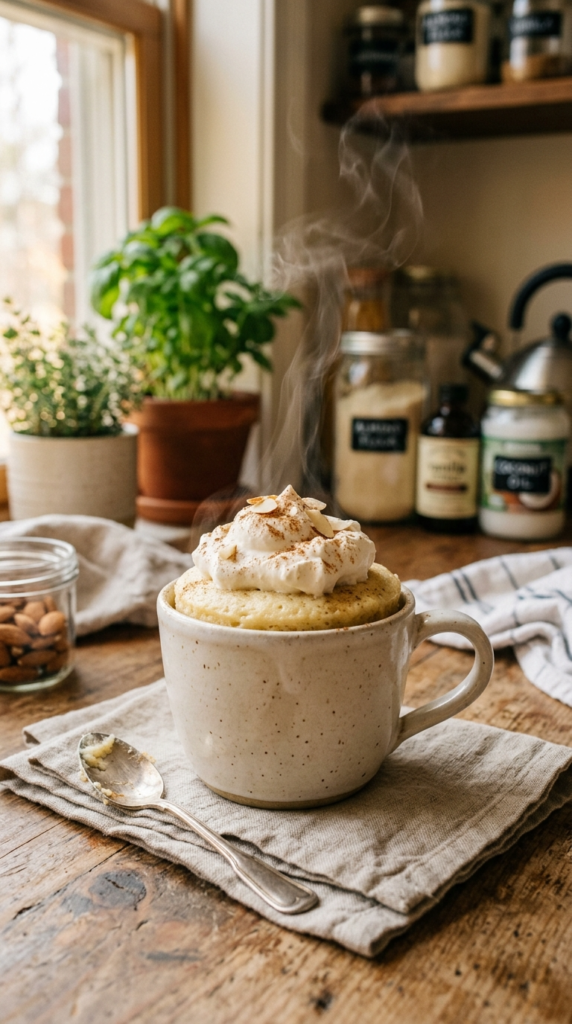Coconut flour can sometimes lead to dry baked goods, but not when cream cheese is involved! A keto vanilla mug cake with coconut flour and cream cheese turns out wonderfully moist and tender. It’s a comforting cake experience that’s portion-controlled and incredibly quick to prepare, perfect for when you need a little something warm and sweet.