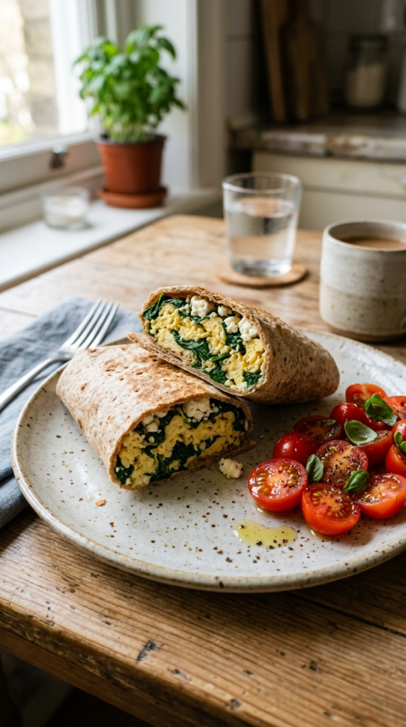 Scramble an egg with some wilted spinach and a pinch of black pepper. Wrap this mixture in a warm whole wheat roti or tortilla. You can add a thin spread of hummus or a spoonful of plain yogurt inside for extra moisture and flavor. Perfect for a busy morning when you need something you can eat on the go.