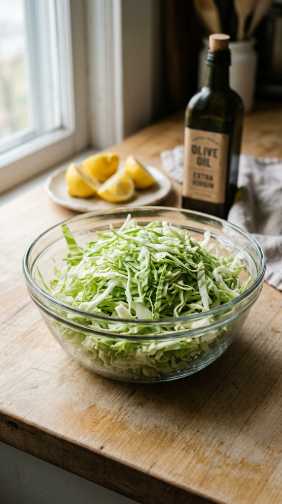 15. Crunchy Cabbage Salad with Lemon Olive Oil