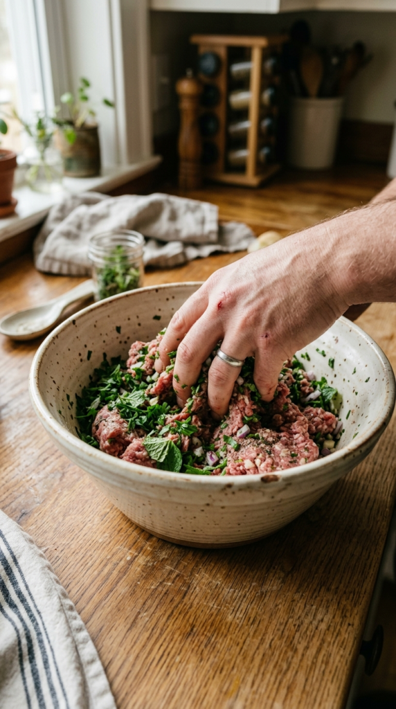 A refreshing twist on beef meatballs, this combination includes fresh mint, onion, garlic, cumin, and paprika. The mint cuts through the richness of the beef, creating a vibrant and balanced flavor profile. These are delicious served with a cool yogurt dip or a side of fresh salad.