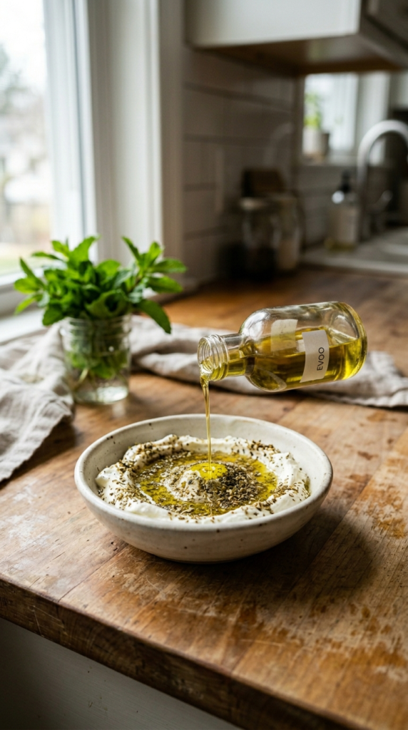 Labneh is a creamy, strained yogurt cheese. If you can’t find it, you can make your own by straining regular dahi for a longer period (8-12 hours) until it’s very thick. Spread the labneh on a plate, drizzle generously with good quality olive oil, and sprinkle with zaatar (a Middle Eastern spice blend readily available now, or you can make a simple version with toasted sesame seeds, dried thyme, and a pinch of sumac if you have it). Serve with warm pita bread or whole wheat toast for dipping. It’s tangy, savory, and incredibly simple.