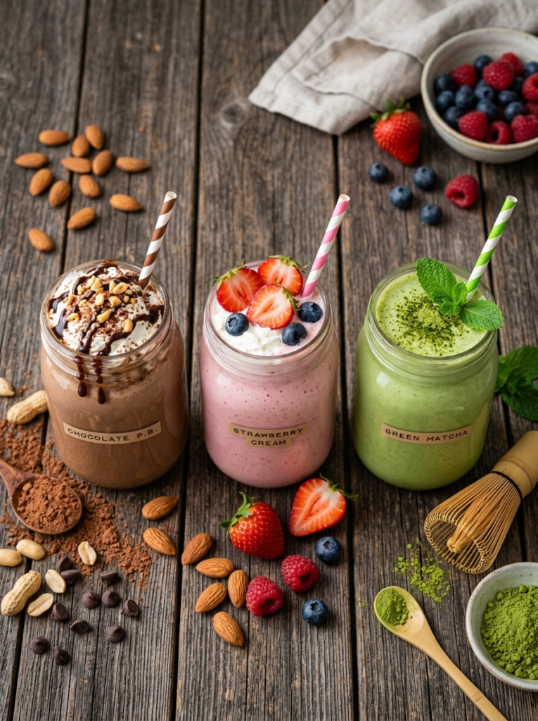 Boredom is the enemy of any healthy habit. If you drink the same vanilla shake every single day, you will eventually give up. I like to rotate my flavors based on my mood. On Monday, I might want a “Chocolate Peanut Butter Cup” vibe, using chocolate protein powder and a big scoop of creamy peanut butter. It feels incredibly decadent, almost like eating dessert for breakfast.
