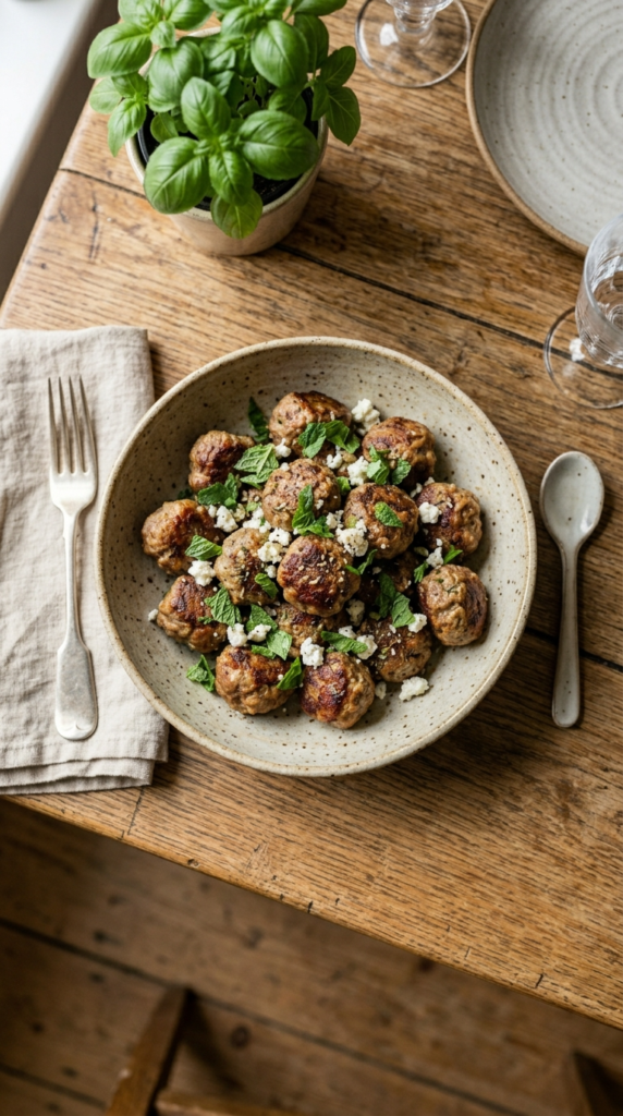 - Chicken and Feta Meatballs: Feta works just as well with chicken, providing a burst of salty creaminess against the lean meat.