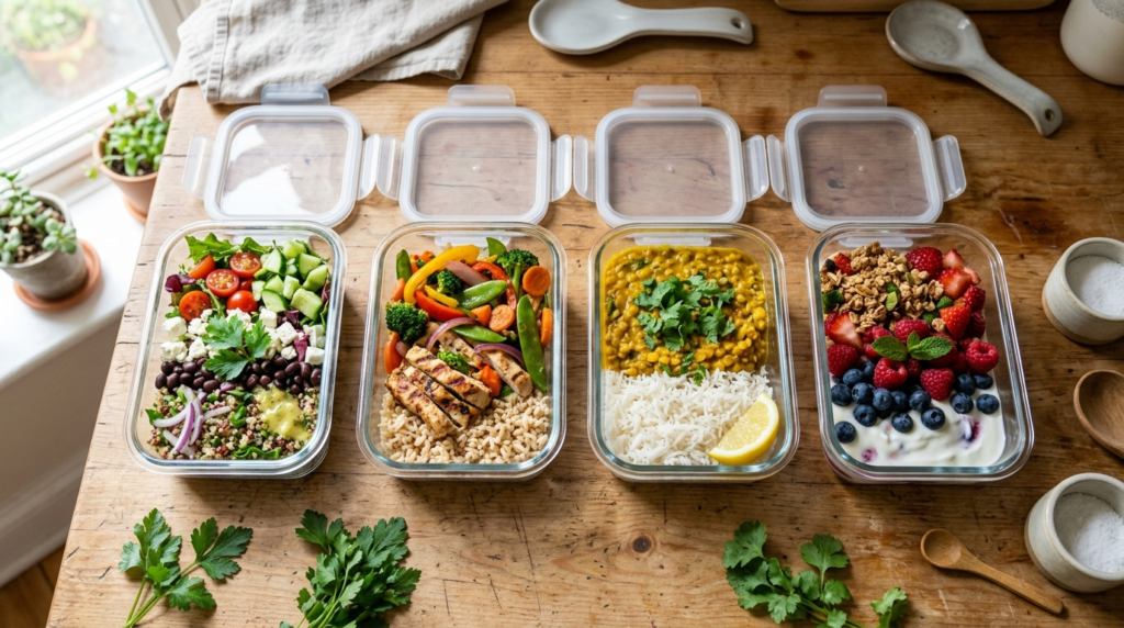 When reheating, most cooked dishes will warm up beautifully in the microwave. If you’re reheating rice or grain bowls, a splash of water can help prevent them from drying out. For curries, gently warm them on the stovetop if you have access, stirring occasionally, until heated through. Properly stored, most prepped lunches are good for 3-4 days in the refrigerator.