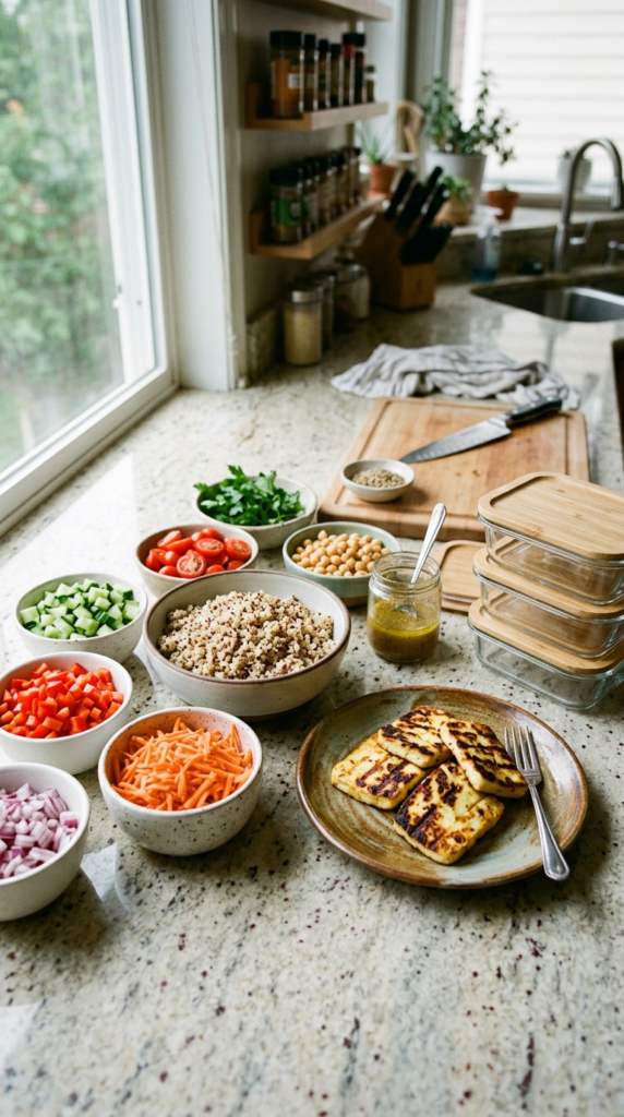Add a medley of roasted or lightly sautéed vegetables like bell peppers, zucchini, carrots, or green beans. A spoonful of homemade chutney, a drizzle of yogurt dressing, or a sprinkle of toasted seeds can bring everything together. These bowls keep well in the fridge for 3-4 days, making them a reliable option for a filling and balanced lunch.