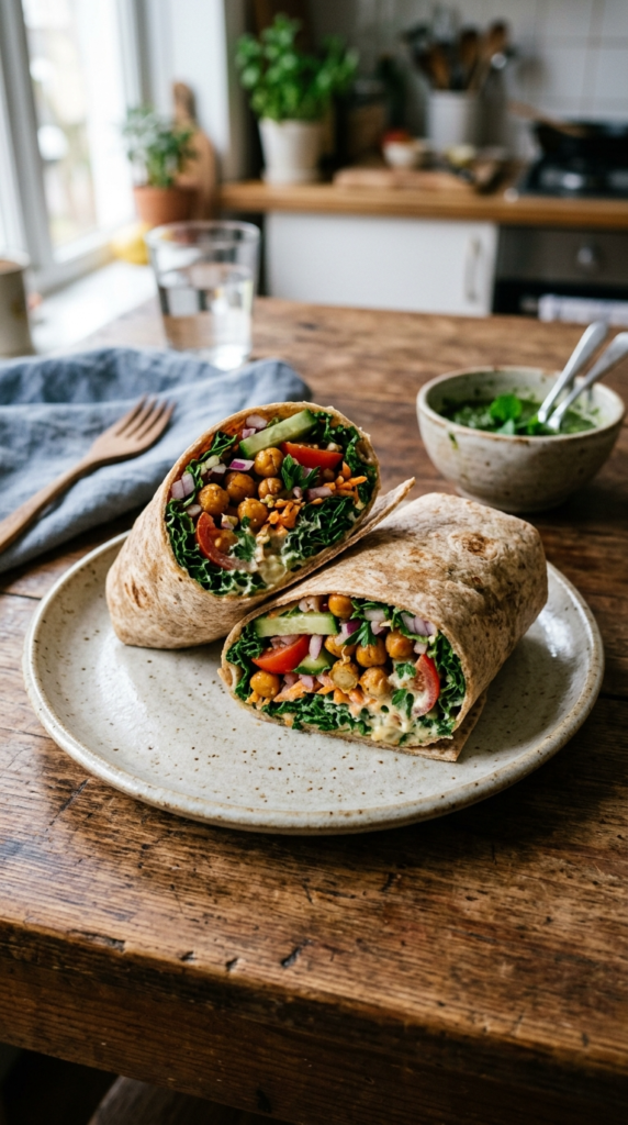 • Chickpea and Veggie Wraps: Mash chickpeas with finely diced onions, tomatoes, coriander, and a squeeze of lemon. Season with chaat masala, then wrap in a whole wheat tortilla with some shredded lettuce.