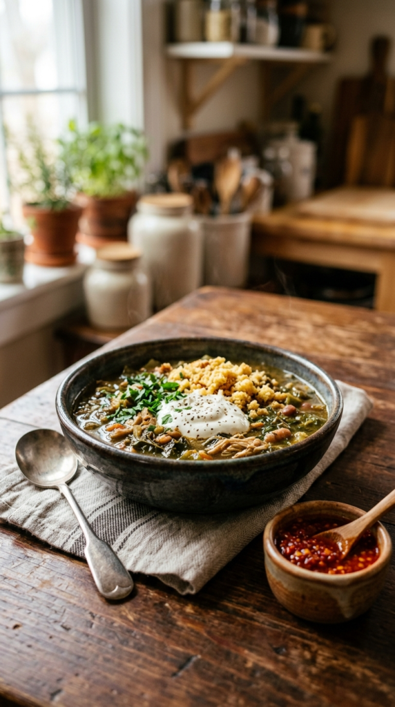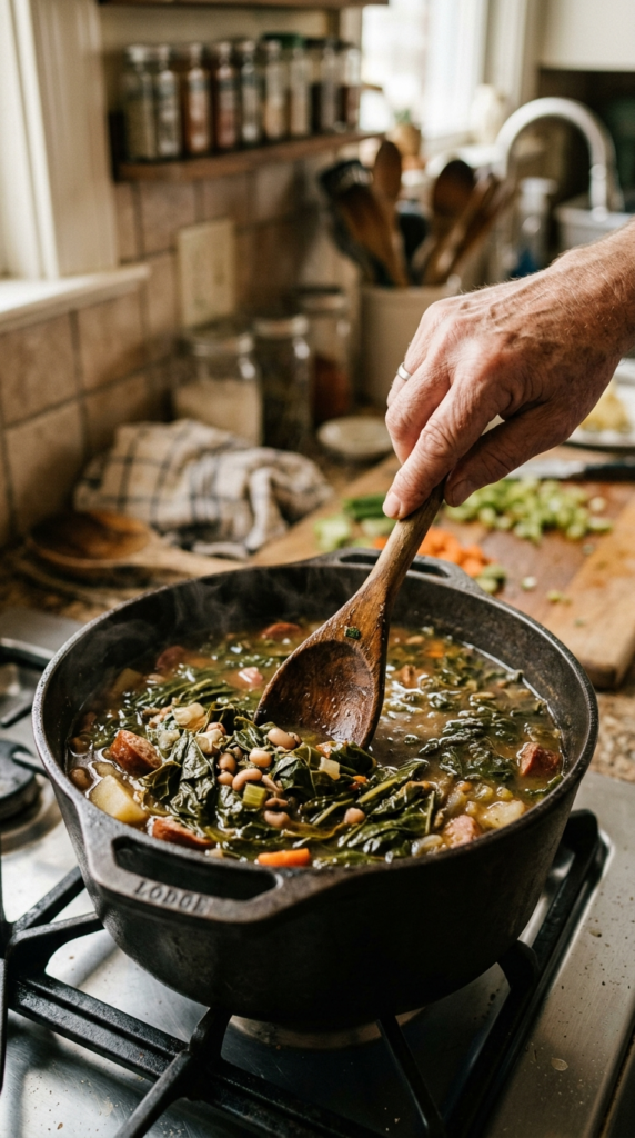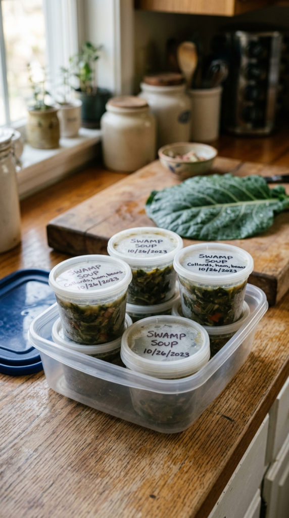 • Fresh Greens Matter: While frozen can work in a pinch, fresh collard greens truly give this soup its signature “swamp” color and earthy flavor. Make sure to remove the tough, woody stems!